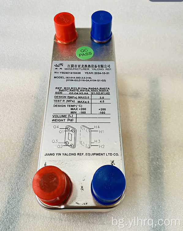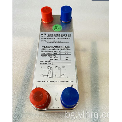 Основните параметри на топлообменника на B3-14-20-1.0, произведен от нашата компания, са височина 206 мм, ширина 76 мм, височината между блендата е 172 мм, ширината между блендата е 42 мм, а дебелината е 9 мм+2,3 мм*(n) n е броят на плочите. Максималният размер на връзката е 3/4 инча! Този продукт се използва главно в серия от малка термопомпа, глави за стена, котли, климатици и друго оборудване, което изисква само сравнително малка обща ефективност на топлообмента!